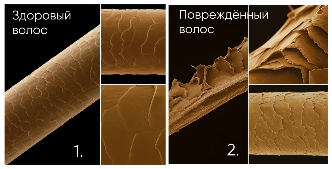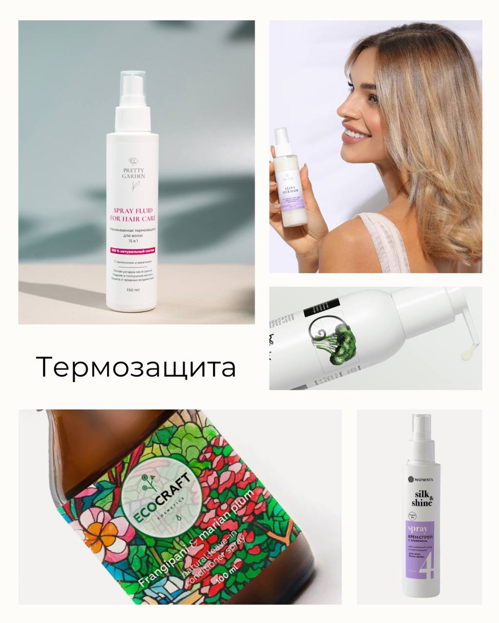Термозащитные компоненты: кератин (восстанавливает структуру волос, создает защитный слой, уменьшающий воздействие высоких температур), гидролизованные протеины пшеницы (образуют легкую пленку на поверхности волоса, предотвращая потерю влаги), пантенол (удерживает влагу внутри волоса, защищая от пересушивания, придает эластичность, уменьшая риск повреждений), триглицериды каприловой/каприновой кислот (уплотняют волос, уменьшают пористость), натриевая соль пирролидонкарбоновой кислоты (предотвращает обезвоживание волоса).