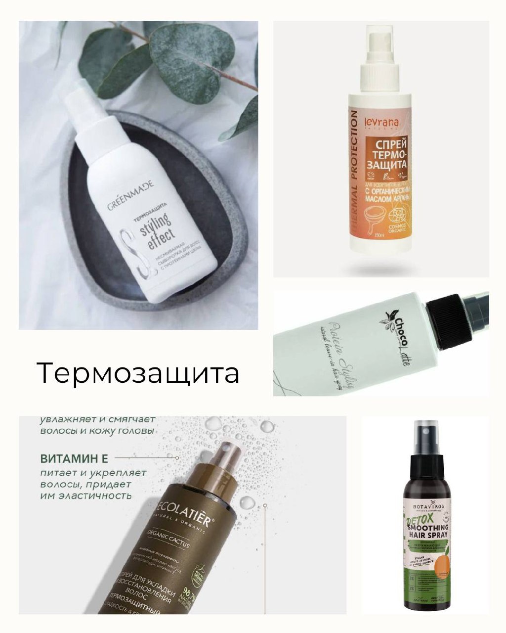 Термозащитные компоненты: Hydrolyzed Keratin (восстанавливает структуру волос, создает защитный слой, уменьшающий воздействие высоких температур), Lecithin (предотвращает потерю влаги при укладке), Hydrolyzed Silk (делает волосы гладкими и мягкими), Macadamia Integrifolia Seed Oil (уплотняет кутикулу, уменьшает повреждения).